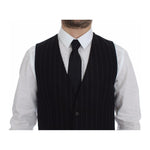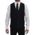 Dolce & Gabbana Black Striped Wool Logo Vest Gilet Weste