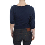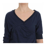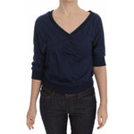 Exte Blue Cotton Top Pullover Deep V-neck Women Sweater