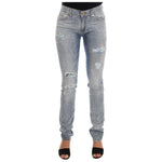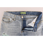 Versace Jeans Blue Wash Torn Stretch Slim Fit Jeans
