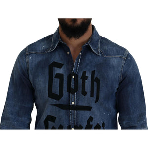 Dsquared² Blue Washed Goth Surfer Print Men Denim Shirt