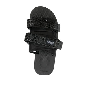 logo-patch touch-strap sandals from BLUMARINE featuring black, logo patch to the front, crystal embellishment, front touch-strap fastening, open toe and flat sole. Touch-strap sandals Size and Fit - Heel 1,2 in / 3 cm; Platform 0,8 in / 2 cm