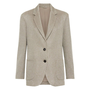 Brunello Cucinelli Sparkling cotton and viscose English rib knit blazer with monili