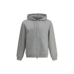 Cotton Hoodie by Brunello Cucinelli features an adjustable hood with drawstring for a customizable fit. The front closure features a double-slider zipper for added convenience and adjustability. Two patch welt pockets on the front add convenience, while ribbed cuffs and hem ensure a snug, comfortable fit. The monochrome design lends a touch of minimalist elegance, while the regular fit offers comfort without sacrificing style. A versatile garment, perfect for everyday wear or moments of relaxation.