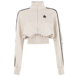 Unleash your bold spirit with the Comme Des Fuckdown zipper jacket, where edgy meets elegance. Crafted from a premium blend of cotton and polyester, this beige technical fabric piece with stretch bottom brings comfort to cool. With striking logo prints and contrasting black bands running down the arms, this jacket is a testament to trendsetting style. Whether you’re strutting the city streets or making an entrance at an event, this jacket redefines casual luxury.