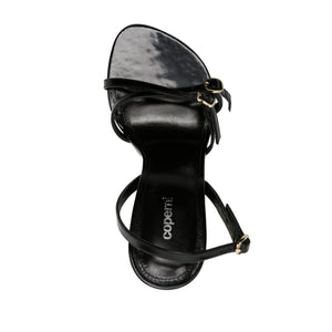 black calf leather smooth grain open toe two buckle fastening straps buckle-fastening ankle strap branded leather footbed 100mm high sculpted heel leather outsole Leather heel sandals Size and Fit - Heel 3,9 in / 10 cm; Platform 0,4 in / 1 cm