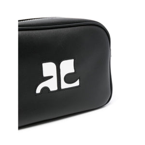 black calf leather smooth grain embroidered logo to the front top zip fastening adjustable detachable shoulder strap slip pocket to the rear main compartment debossed internal logo internal zip-fastening pocket full lining silver-tone hardware This piece comes complete with a protective dust bag. Leather camera bag Size and Fit - Width 7,09 in / 18 cm