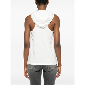 white cotton jersey texture classic hood sleeveless embroidered logo to the front logo patch to the front racerback unlined straight hem Hooded tank top Size and Fit - This piece fits true to size. We recommend you get your regular size. Model is 1,75m / 5ft 8in wearing size S
