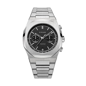 • Alt Tag: D1 MILANO Mod. CHRONOGRAPH NEW BLACK - RE-STYLE EDITION stainless steel wristwatch with black dial and quartz movement