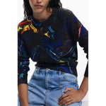 Draped in the artistic vision of Desigual, this long-sleeved jersey exudes a bold tapestry of patterns that dances with Butterfly Lacroix’s signature touch. A sleek crew neck frames the silhouette, while the Desigual logo discreetly marks your allegiance to trailblazing fashion. Crafted with a blend that moves with grace and ease, this black sweater is a canvas of wearable art ready to elevate your wardrobe.