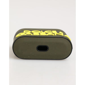 Dolce & Gabbana Army Green Rubber Logo Embossed Accessory Airpods Case with yellow branding on the side view