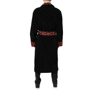 • Dolce & Gabbana Black Cherry Print Wrap Robe Men Coat Jacket