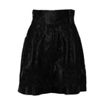 Dolce & Gabbana Black Floral Embroidery Silk High Waist Shorts
