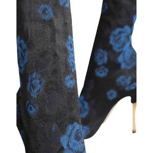 Dolce & Gabbana Black Floral Stretch Mid Calf Boots Shoes