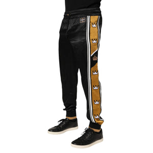 Dolce & Gabbana Black Gold Satin Crown Side Stripe Jogger Pants