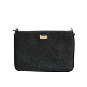 Dolce & Gabbana Black Grain Leather Logo Plaque Clutch Bag