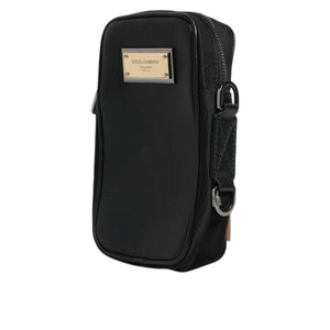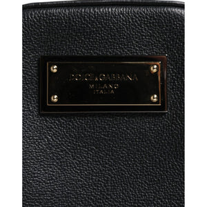 Dolce & Gabbana Black Grain Leather Logo Plaque Clutch Bag