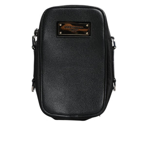 • Dolce & Gabbana Black Grain Leather Logo Plaque Clutch Bag