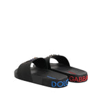Dolce & Gabbana Black Leather Slides Flats Beachwear Shoes