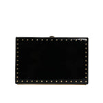 Dolce & Gabbana Black Leather Studs Gold Frame Clutch Evening Purse Bag