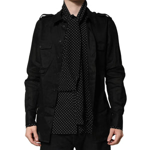 Dolce & Gabbana Black Polka Dot Linen Silk Men Casual Shirt