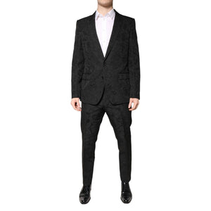 Dolce & Gabbana Black Polyester Floral Jacquard 2 Piece Suit