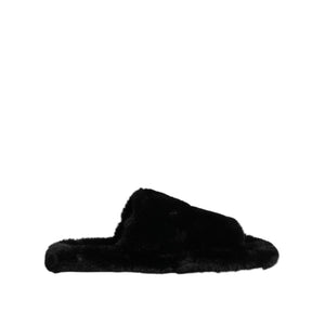 Dolce & Gabbana Black Polyester Velvet Slides Slipper Shoes