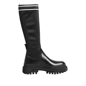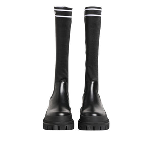 Dolce & Gabbana Black White Polyester Socks High Boots Shoes