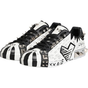 Dolce & Gabbana Black White Studded Low Top Sneakers Shoes