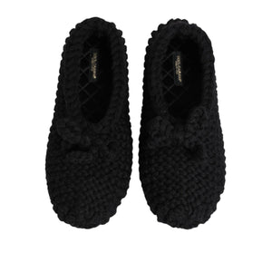 Dolce & Gabbana Black Wool Knit Slip On Ballerina Flats Shoes