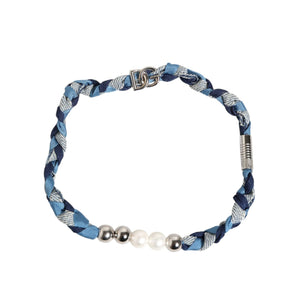 Dolce & Gabbana Blue White Braided Silver Metal Logo Beaded Men Bracelet