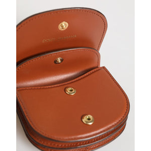 Dolce & Gabbana Brown Black Calf Leather Leopard Print Logo Plaque Wallet