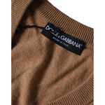 Dolce & Gabbana Brown Cashmere Knit V-neck Pullover Sweater