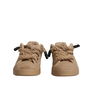 Dolce & Gabbana Brown Jute Fabric Low Top Men Sneakers Shoes