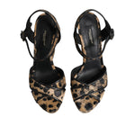 Dolce & Gabbana Brown Leopard Wedges Ankle Strap Sandals Shoes