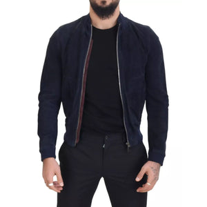 Dolce & Gabbana Dark Blue Suede Lambskin Blouson Jacket