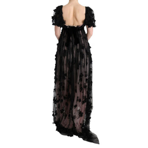 Dolce & Gabbana Black Pink Silk Applique Shift Dress