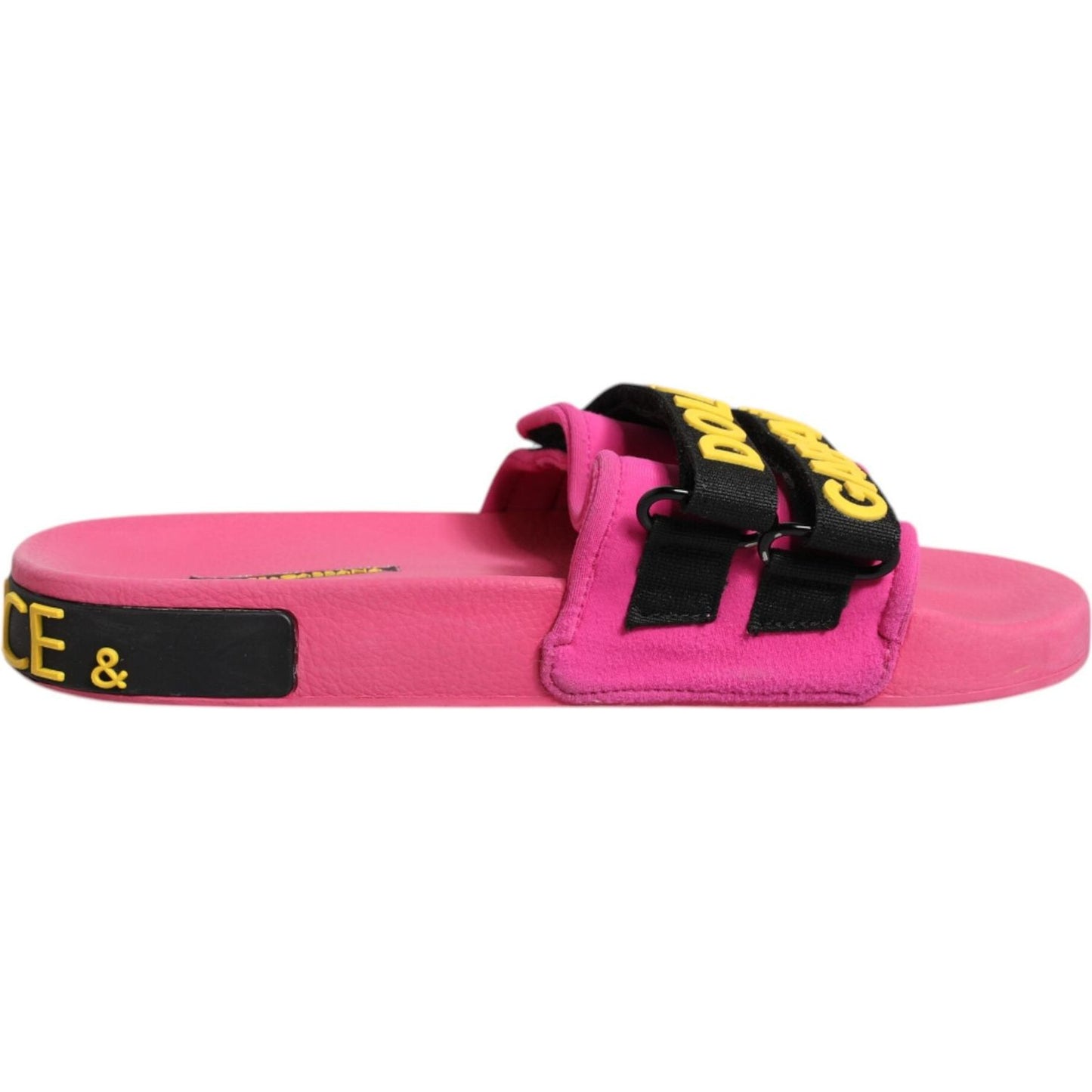 Dolce & Gabbana Fuchsia Neoprene Slides Flats Beachwear Shoes
