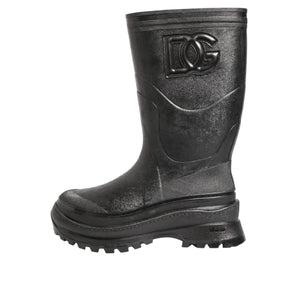 Dolce & Gabbana Metallic Black Pull On Rain Boots Men Shoes