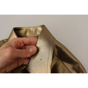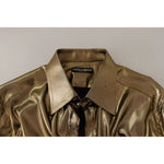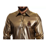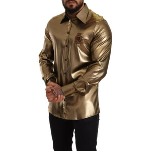 Dolce & Gabbana Metallic Gold DG Embroidered Crown Silk Top Shirt