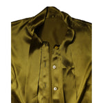 Dolce & Gabbana Olive Green Ascot Collar Long Sleeve Blouse Top