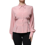 Dolce & Gabbana Pink Cotton Long Sleeves Collared Blouse Top