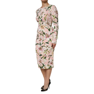 Dolce & Gabbana Pink Lily Viscose Sheath Stretch Midi Dress