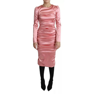 Dolce & Gabbana Pink Long Sleeves Bodycon Sheath Midi Dress