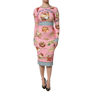 Dolce & Gabbana Pink Pastry Print Bodycon Sheath Midi Dress