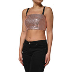 Dolce & Gabbana Pink Sequined Nylon Sleeveless Cropped Top
