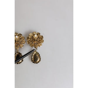 Dolce & Gabbana Purple Flower Pearl Teardrop Crystals Clip On Earrings