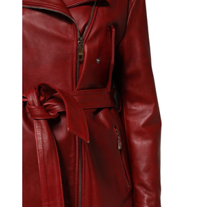 Dolce & Gabbana Red Leather Belted Full Zip Trench Coat Jacket
