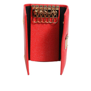 Dolce & Gabbana Red Leather Silver Metal Logo Plaque Trifold Key Holder
