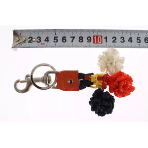 Dolce & Gabbana Silver Brown Raffia Leather Clasp Finder Chain Keyring