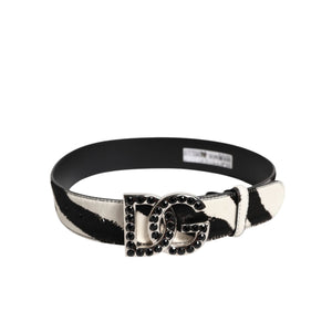 Dolce & Gabbana White Black Leather Zebra DG Crystal Buckle Belt